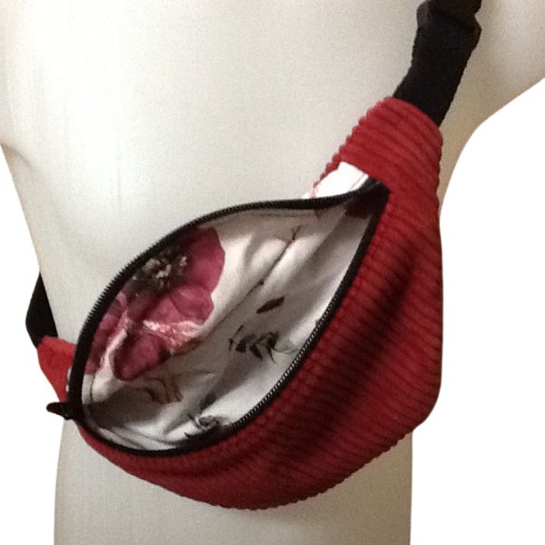 Sac banane enfant en velours côtelé rouge bordeaux, fait-main